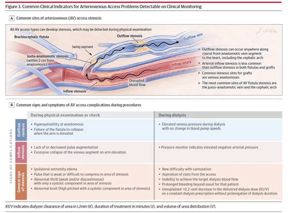 * Estenose: é a principal causa de hipofluxo no acesso arteriovenoso e consiste em uma importante causa de trombose e perda do acesso. Geralmente decorre de hiperplasia neointimal progressiva por tensão de