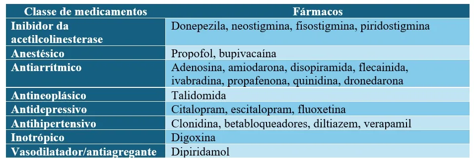 Tabela 2: Medicamentos que podem causar ou agravar bradicardia sinusal/bloqueio atrioventricular (adaptado de Tisdale et al.)