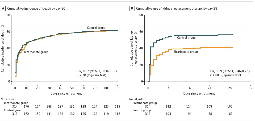 ✅ O bicarbonato não reduz mortalidade em 90 dias.
