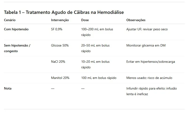 As cãibras musculares são complicações comuns e clinicamente relevantes na hemodiálise (HD), frequentemente levando à interrupção precoce das sessões, com impacto na adequação da diálise e risco de hipervolemia.