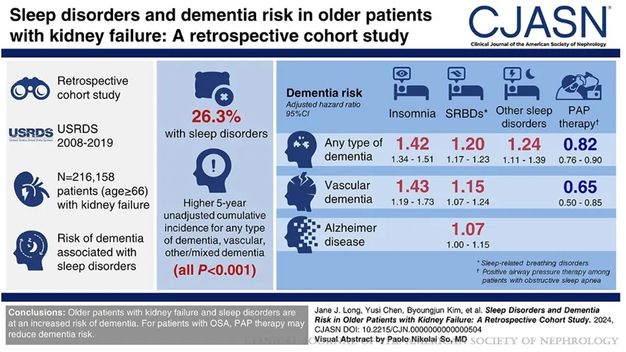 Iremos resumir para vocês este estudo sobre o assunto que foi publicado em janeiro de 2024 no CJASN. Este estudo é importante porque mostra a ligação entre distúrbios do sono e o risco aumentado de demência, destacando a necessidade de abordar esses problemas de forma mais eficaz! Para mais detalhes deste estudo acesse o artigo neste [link](https://journals.lww.com/cjasn/abstract/9900/sleep_disorders_and_dementia_risk_in_older.412.aspx).