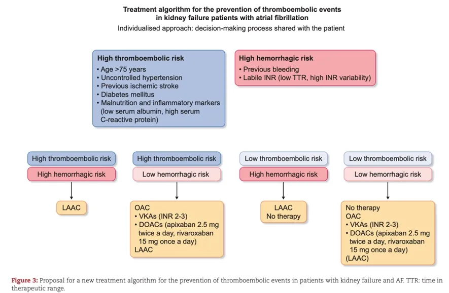 * O fechamento do apêndice atrial esquerdo (LAAC) é proposto como uma alternativa à anticoagulação oral em pacientes com alto risco de sangramento. Estudos observacionais sugerem que o LAAC pode ser eficaz e seguro em pacientes em diálise, embora mais estudos sejam necessários para confirmar esses achados. Já tinha ouvido falar?