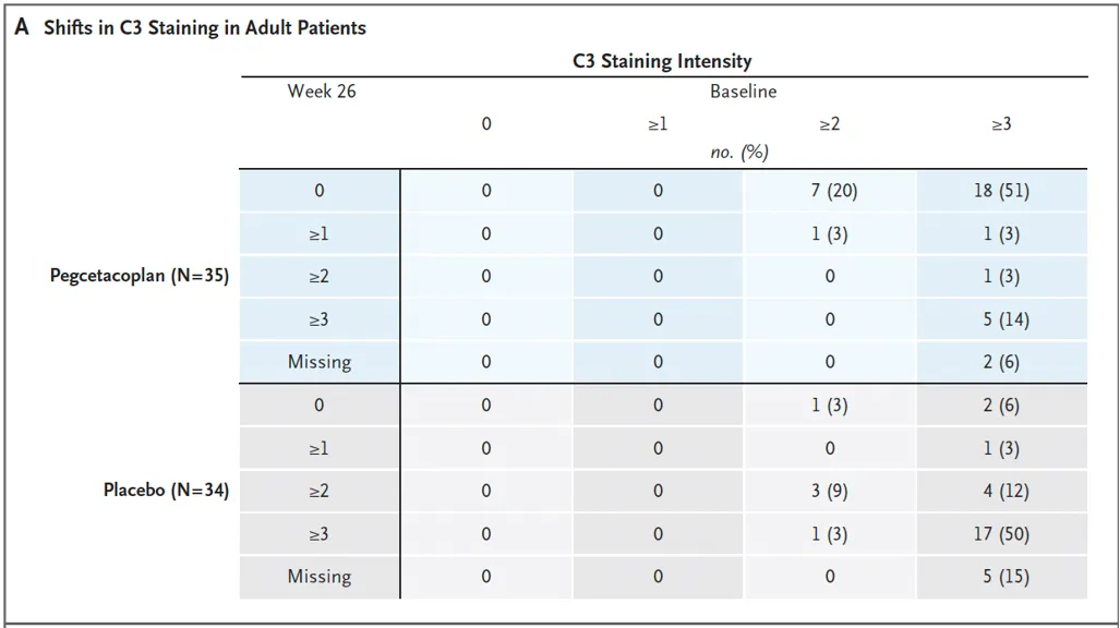 Bloquear C3 diretamente com pegcetacoplan reduz proteinúria e estabiliza a função renal em pacientes com GNC3 (ou MPGN imune-complexo primária)?