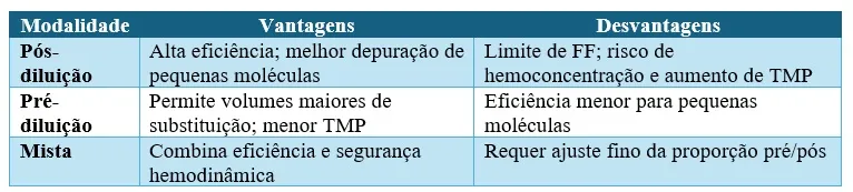 * Pós-diluição: manter ≤ 25% (0,25) para evitar hemoconcentração excessiva
