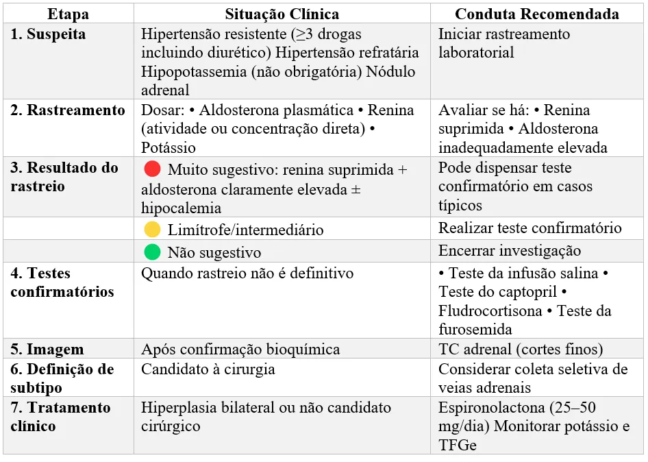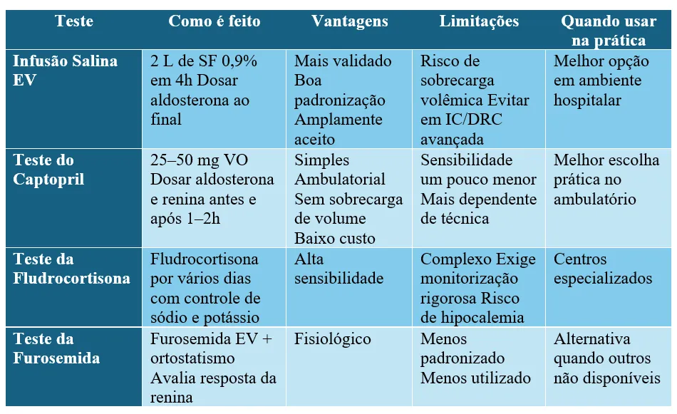 Mas em casos clássicos (hipocalemia espontânea + renina suprimida + aldosterona elevada), muitas vezes o diagnóstico já está praticamente definido.