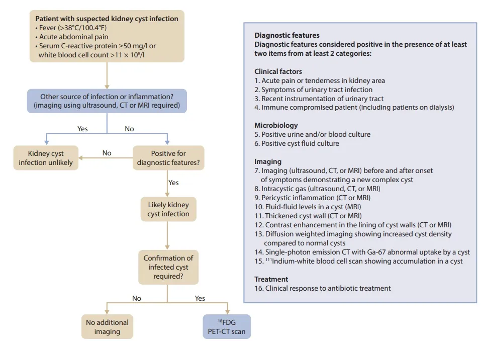 A infecção de cisto na DRPAD requer alta suspeição clínica, abordagem diagnóstica específica e seleção cuidadosa do antibiótico. Tratamentos mais longos com antibióticos lipofílicos e vigilância por imagem são essenciais para evitar complicações e recorrências.