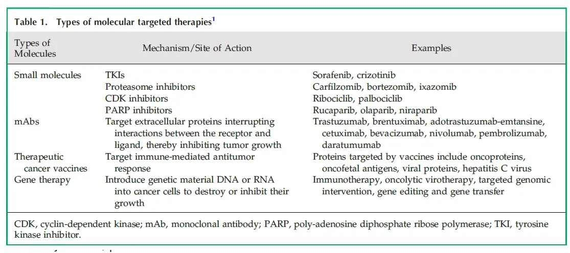 Antes de tudo vale a pena conferir a tabela abaixo para entender os tipos de terapias alvo moleculares: