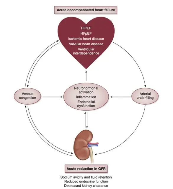 Embora a diminuição do débito cardíaco possa não ser a única culpada pela síndrome cardiorrenal, certamente desencadeia um cascata de respostas compensatórias. Estratégias para aumento do débito cardíaco incluem o uso de inotrópicos incluindo milrinona ou dobutamina.