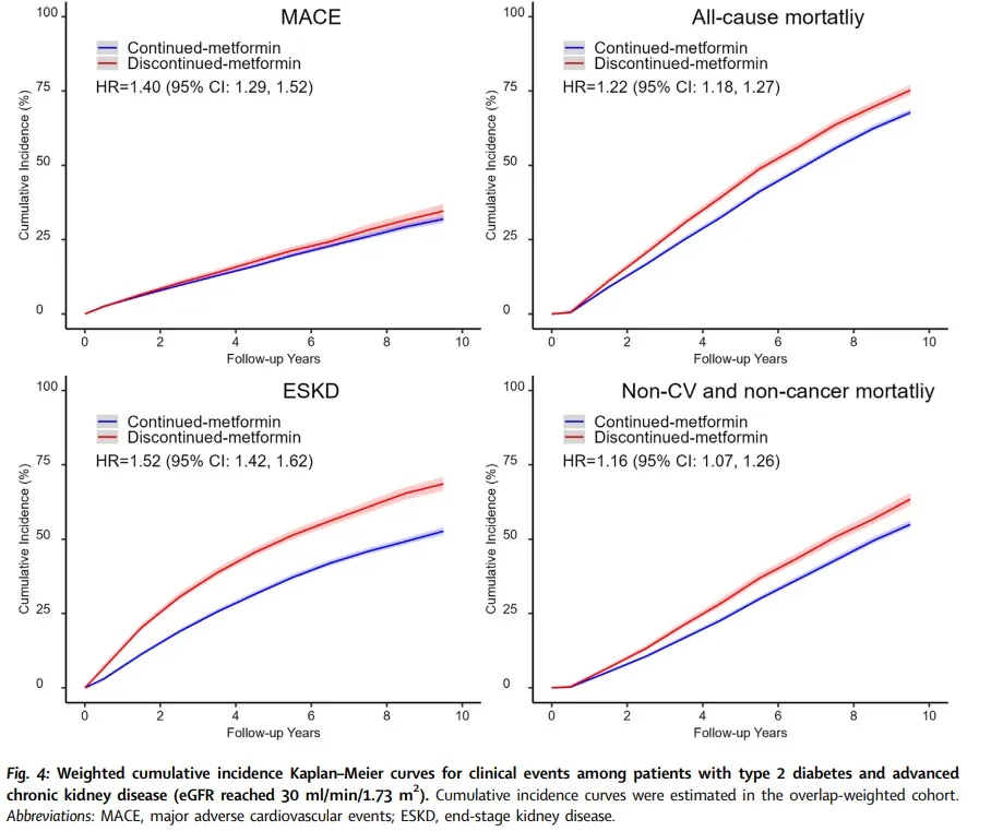 Comparou 4.278 pacientes com DRC 4 que continuaram ou pararam metformina.