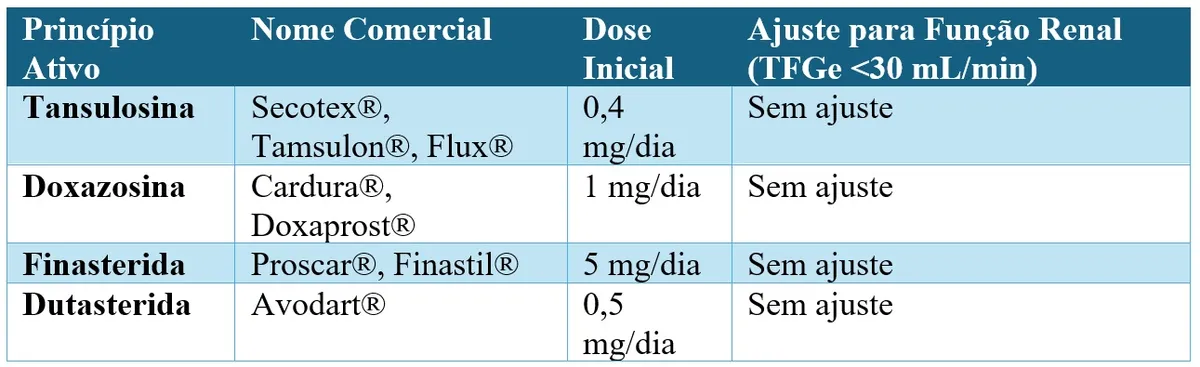 * Finasterida (Proscar®, Finastil®) - Dose inicial: 5 mg/dia.