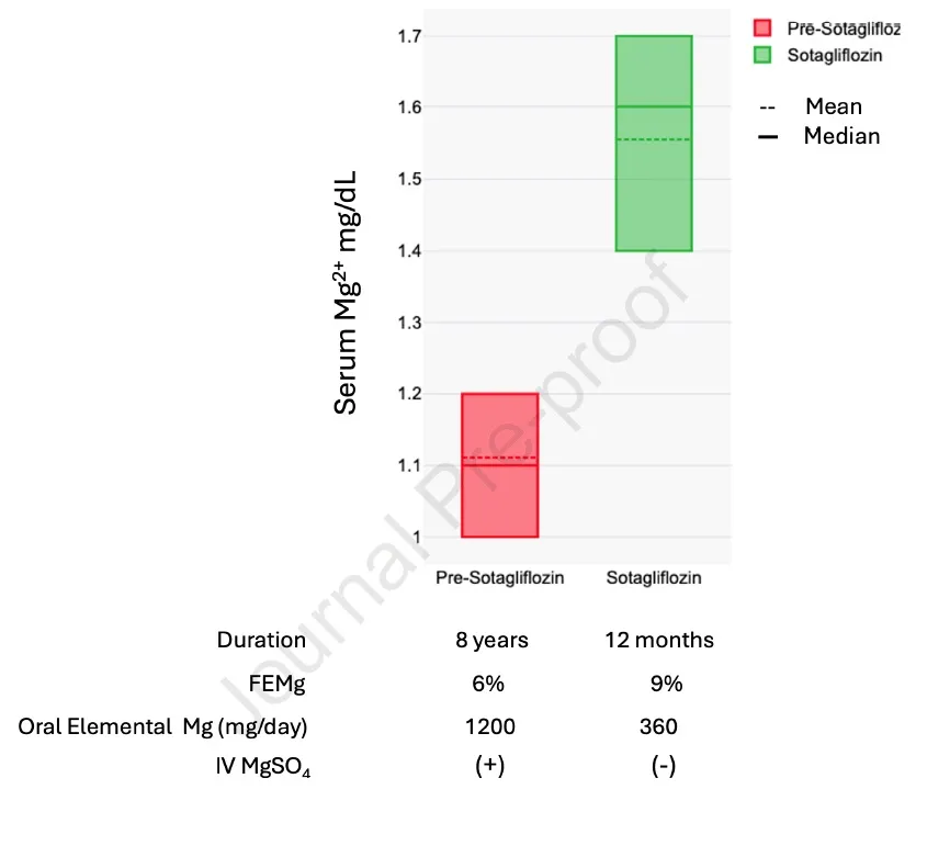 A hipomagnesemia é uma complicação frequente em pacientes com doença renal crônica e diabetes, representando desafios terapêuticos significativos. Este caso clínico destaca o potencial do sotagliflozina, um inibidor dual dos cotransportadores sódio-glicose (SGLT1 e SGLT2), no manejo de hipomagnesemia severa e refratária, com resultados promissores.